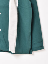 シンプルながらも色使いが洒落ている開襟シャツ。コットンリネン生地で、しっかりとしています。