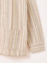 カラフルなストライプ織り生地の長袖シャツ。裾に両ポケットが備わったマイアミスタイルが、ヴィンテージライクな雰囲気漂う一着です。共布のイージーパンツとのセットアップも可能。やや厚みのある生地感です。