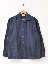 【2色展開】Backers マルチストライプ織り 長袖 オープンカラーシャツ