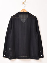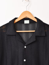 細やかな編み模様が印象的な開襟シャツ。春夏は羽織として、秋冬はジャケットのインナー使いにも重宝しそうな、オールシーズン着回せる一着です。フリーサイズで着用いただけます。