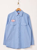 ストライプ柄にワッペンをあしらい、ワークシャツらしいディテールが魅力的な一着。しっかりとしたコットンポリ生地で仕立てています。