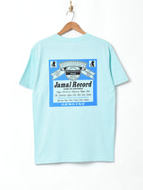 バックプリントにもこだわった、レコードモチーフのプリントTシャツ。薄手ながらタフなギルダンボディです。
