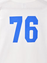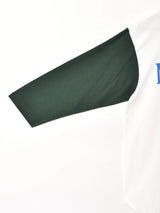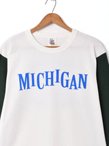 スリーブのポイントカラーデザインとカジュアルな雰囲気のプリントがマッチした7分袖Tシャツ。程よい厚みのコットン生地です。