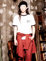 雰囲気のよいプリントが目を惹くリンガーTシャツ。バックスタイルまで抜かりのないデザインが◎。柔らかく肌触りのよい一枚です。