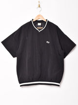 胸元のワンポイントが特徴的なプルオーバートップス。ポリエステル素材の軽い生地感で、ルーズなシルエットがユニセックスでお使いいただける一着です。