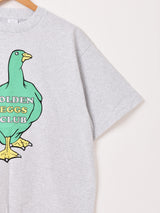 ユニークな鳥のキャラクターがプリントされ、古着と相性の良さそうなTシャツ。7.1オンスの程よい厚みでしっかりとした生地感です。
