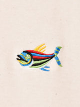 カラフルな魚のワンポイント刺繍が目を惹くロンT。程よく厚みのある生地で軽い着心地です。