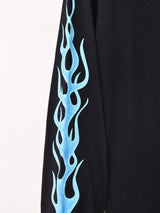 袖のファイヤーパターンのプリントが目を惹くロンT。6.2オンスで程よい厚みのコットン生地です。