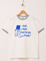 シュールなモンスターのキャラクターがプリントされたリンガーTシャツ。程よい厚みのコットン生地で仕立てています。
