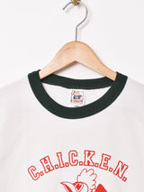 ユニークなニワトリと合わせたアーチプリントが魅力のリンガーTシャツ。程よい厚みの生地感です。