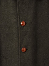 チロル地方発祥の、ハンティング用の防寒着「ローデンコート」。脇が開いたデザインが特徴的。シンプルながら、深みのある色合いとロング丈がさまになる一着。背抜きの裏地付き。おそらくウールとアルパカの混紡素材で、しっかりとした生地感です。
