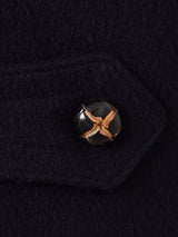 色はネイビー、シングルブレストの全体的にベーシックな作りで、実用性の高い一着です。
