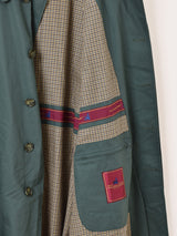 深緑の落ち着いたカラーに、チェックのライニングがアクセントになったステンカラーコート。上品な印象に仕上げてくれる一着です。