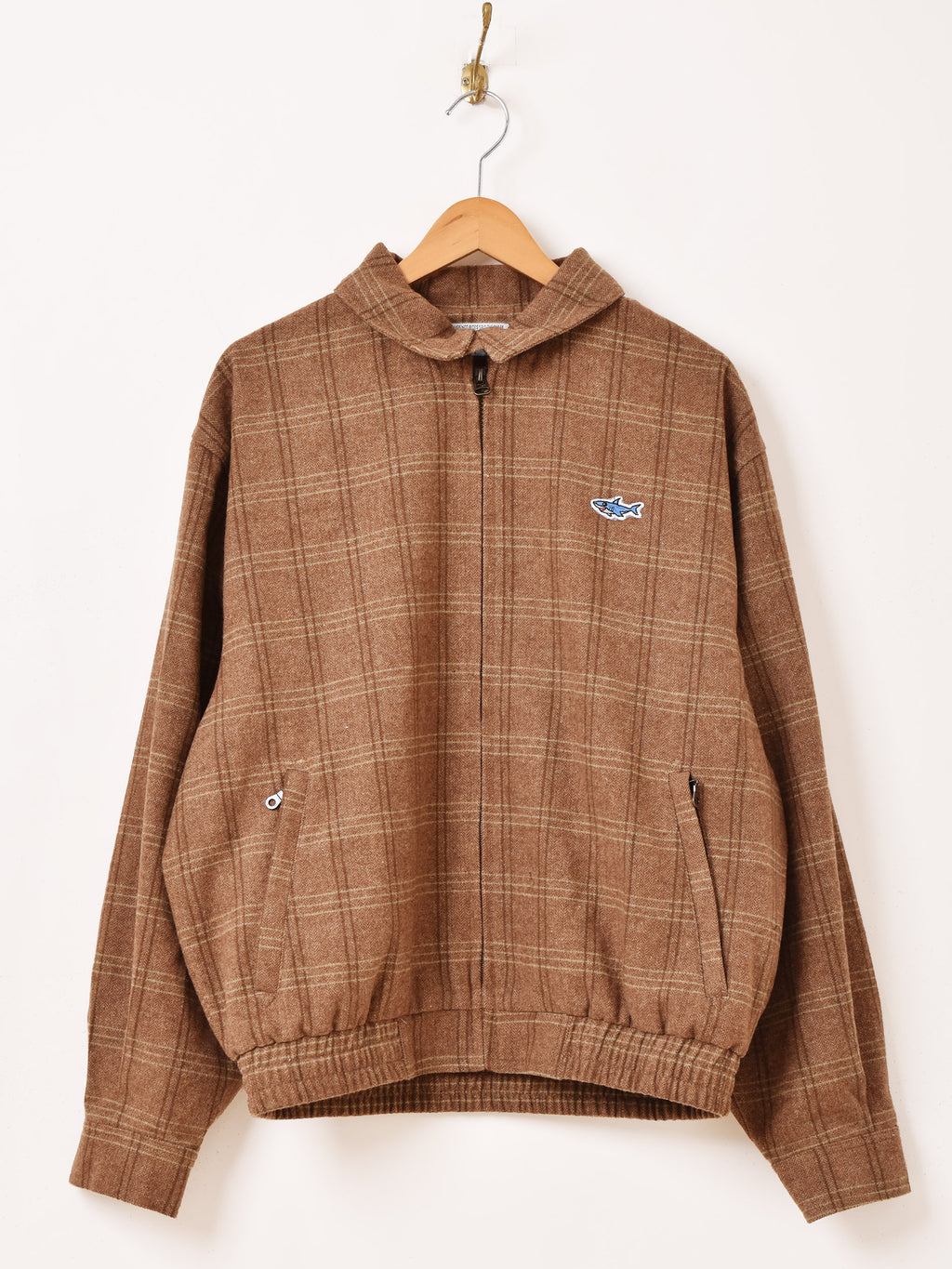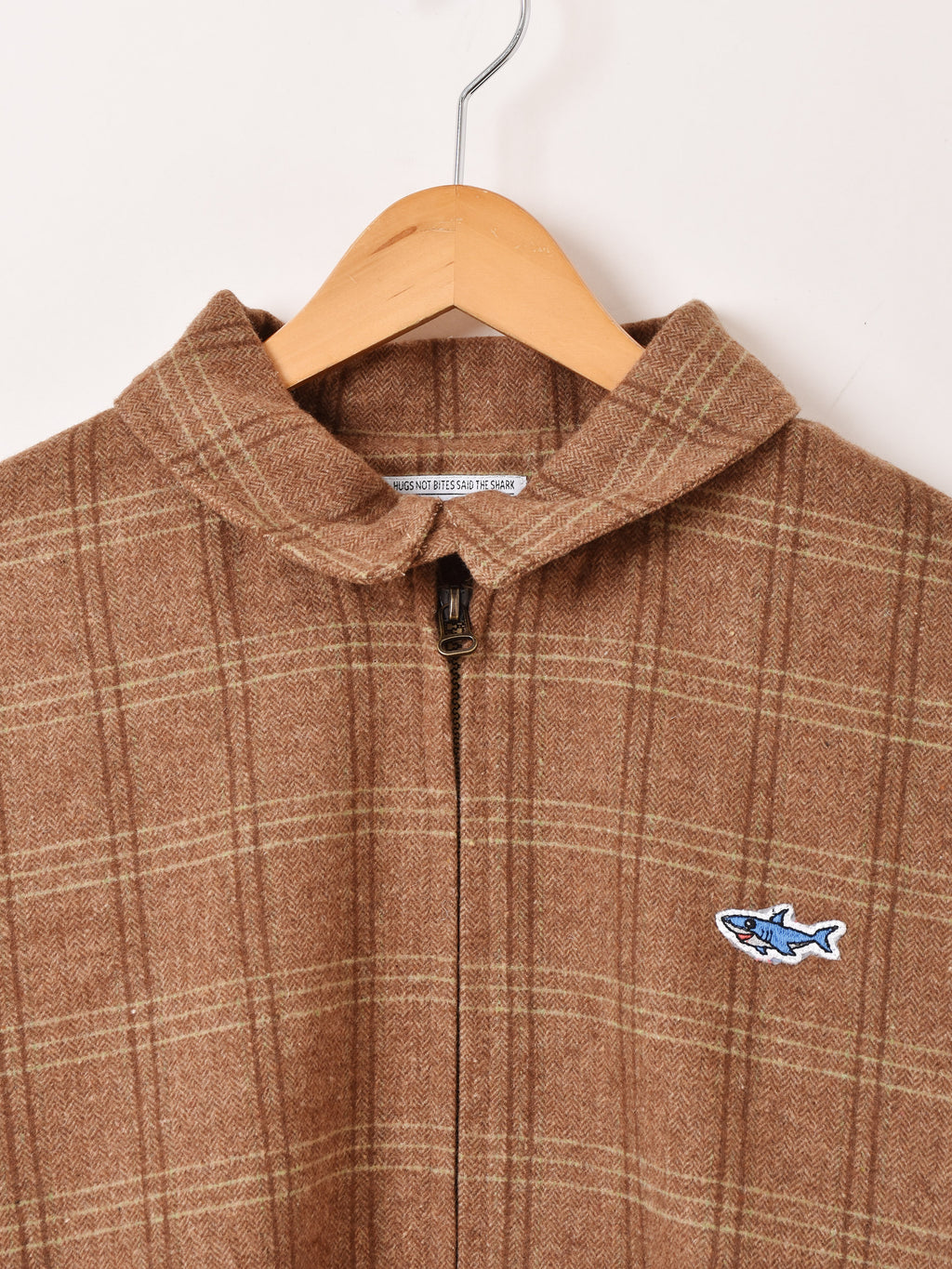 胸元にサメのワンポイントデザインをあしらったジップアップジャケット。ウール混の季節感あるテキスタイルが秋冬コーデにぴったり。ヘビーなアウターの下に、インナージャケットとして着るのもおすすめです。