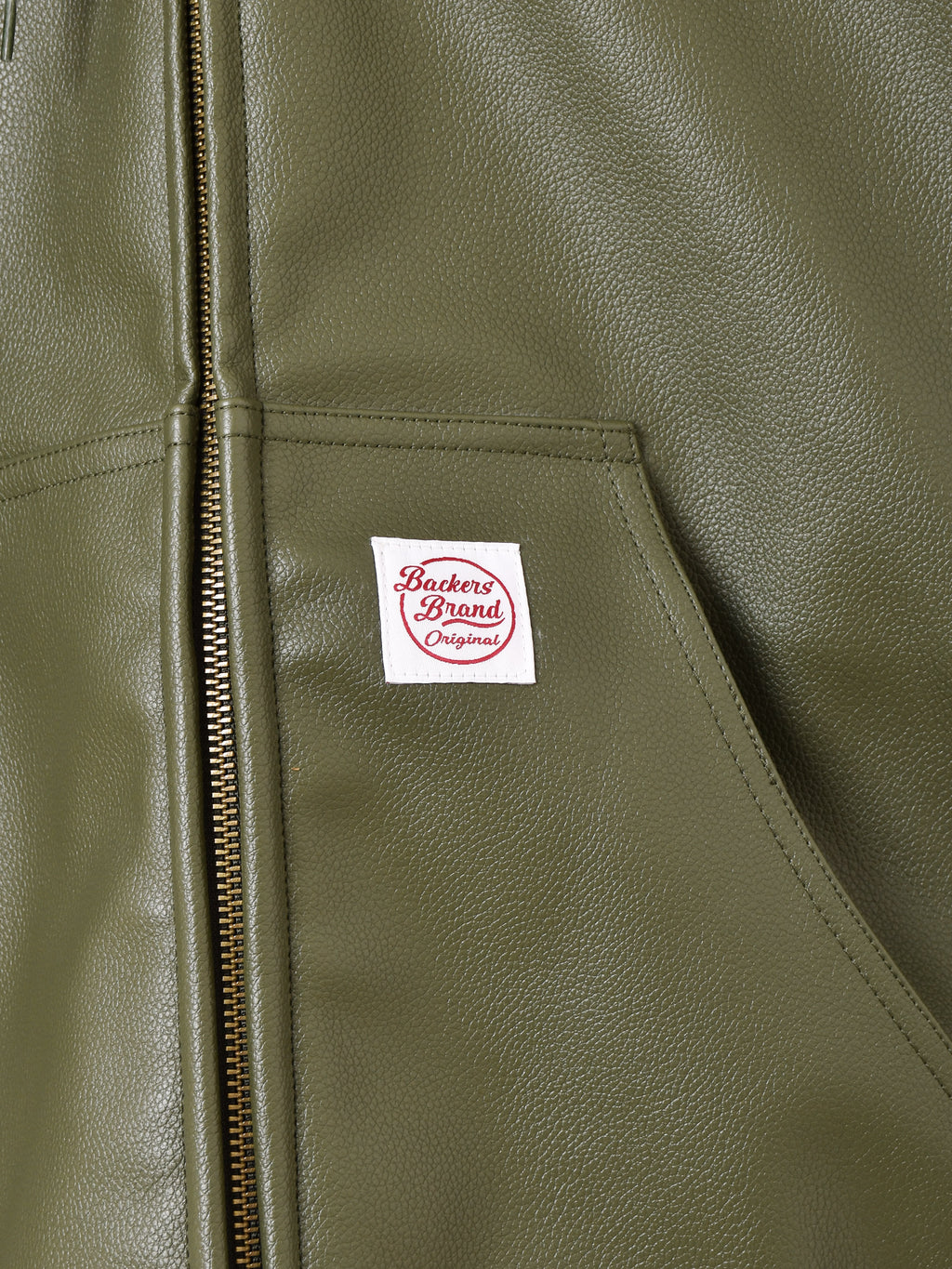【3色展開】Backers フェイクレザー ジップアップ パーカー
