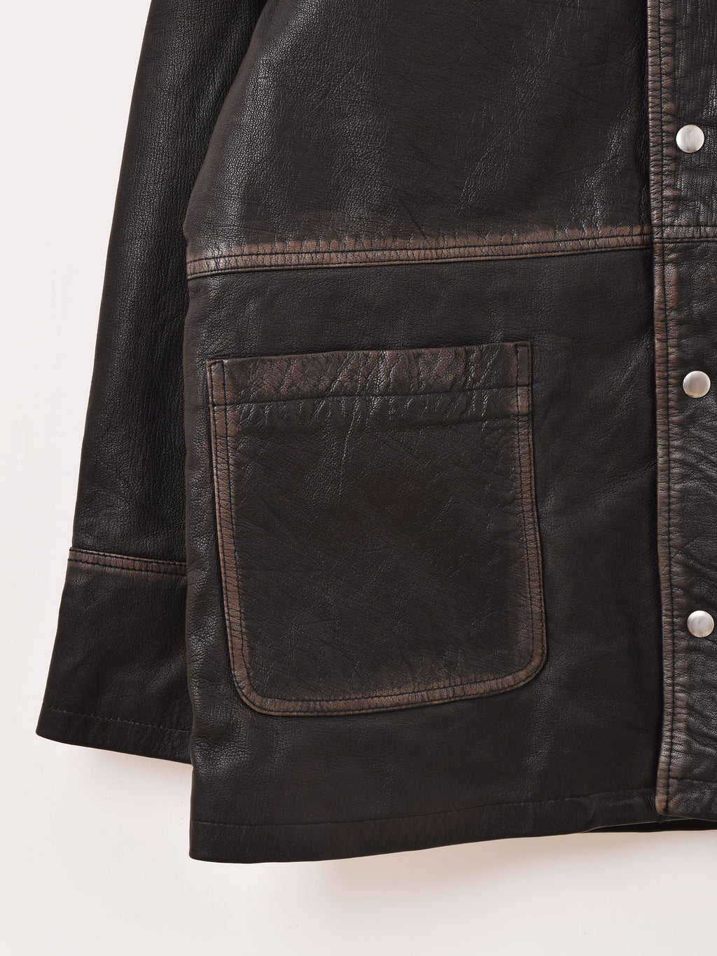 ヴィンテージのカバーオールからインスパイアされたレザージャケット。ワークなディテールが魅力的です。丈夫でしなやかなゴートスキンを使用。肌馴染みの良い質感で身体にもフィットしやすいため、長い間重宝してくれます。じっくりと時間をかけて経年変化を楽しむのもおすすめ。Sサイズはレディースに、Mサイズはメンズにも着やすいサイズ感で仕上げました。