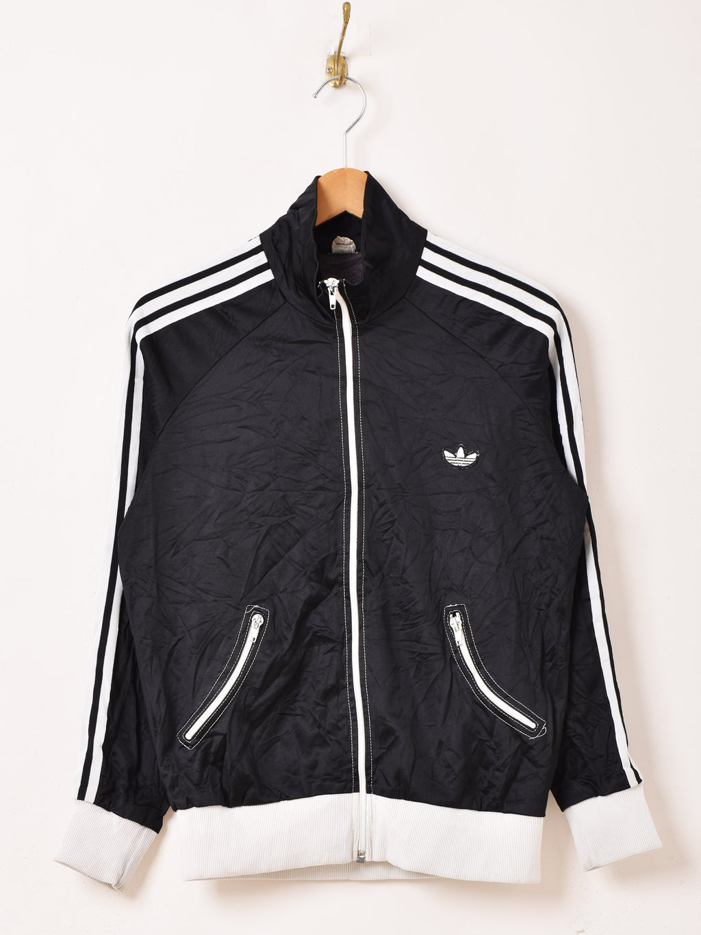 1972年から1995年までアディダスの正式ロゴとして使用されていた、トレフォイルロゴのワンポイント刺繍入りトラックジャケット。