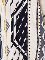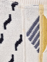 爽やかに着こなせるホワイトベースの3Dニット。おそらくコットン素材の、厚手でしっかりとした生地感です。