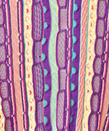 カラフルなカラーリングと立体編みが目を惹くセーター。