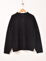シンプルで使いやすい無地のポロセーター。程よく伸縮性があり、ローゲージでやや厚みのある生地感です。フリーサイズで着用いただけます。