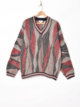 Vネック 3Dコットンニットセーター