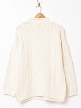 立体的な編み模様が魅力的なフィッシャーマンセーター。ウール100%で程よい厚みの、保温性に優れた生地感です。