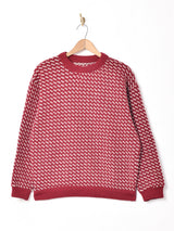 品のあるワインレッドが魅力のエルエルビーンの総柄セーター。目立ったダメージのない状態良好な一着。肉厚なウール混ニットで、保温性も兼ね備えた生地感です。
