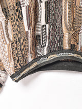 落ち着いたトーンのカラーをふんだんに使い、深みのある柄が魅力的な3Dセーター。ルーズに着こなしたいオーバーシルエットも魅力のひとつ。程よい厚みで肌触りのよい、コットンニットです。