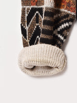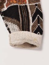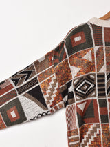 幾何学模様がデザインされた、個性的な総柄セーター。薄手でふんわり柔らかい生地感です。