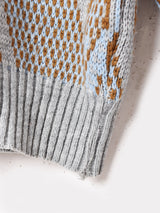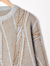 淡いブルーの色味と総柄がマッチした、古着らしい雰囲気満点の一着。程よい厚みの生地感です。