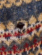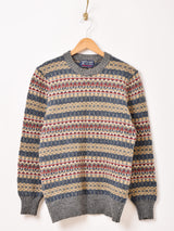 あたたかみを感じられる、フェアアイル柄のウールニットセーター。ウールながらもライトな生地感で着回しやすい一着です。
