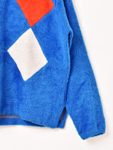 ビビッドなブルーにレッド&ホワイトのダイヤ柄が一際目を惹きます。ボタン付きのショールカラーに、裾はスリット入り。短く起毛した肌触りの良い表面と、通気性のあるメッシュ状に編まれた裏地が、本来のフリーストップスの機能を発揮してくれる一点。プルオーバータイプのざっくりとしたシルエットも魅力的です。