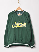 フロントの刺繍がポイントになり、スポーティーなデザインが魅力的なプルオーバートップス。裏地付きで、シャカシャカした軽い生地感です。フリーサイズで着用いただけます。