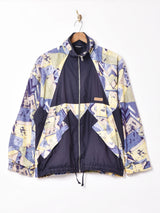 柄生地の切り替えデザインが洒落たナイロンジャケット。裏地はメッシュになっていて、タウンユースはもちろん様々なシーンで着ていただけます。