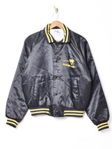 ブラック×イエローのカラーリングがクールなスタジアムジャンパー。裏地は中綿入りのキルティングになっていて暖かさと軽さも魅力です。
