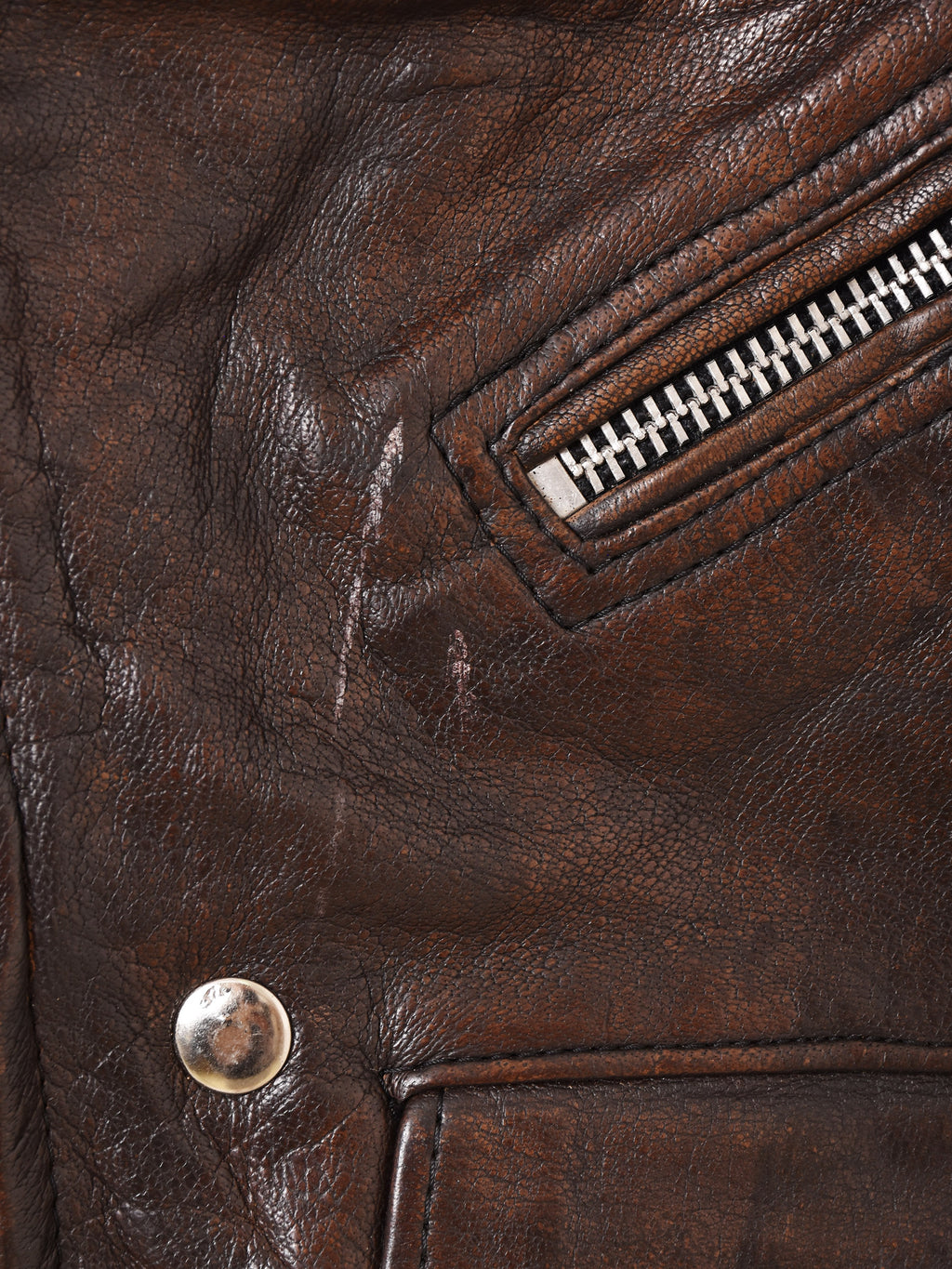 しっかりとした厚みがありながらも柔らかくしなやかなレザーで仕立てられており、まだまだ長く着用が可能で、経年変化でさらに風合いが増していきそうです。