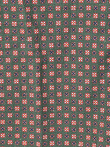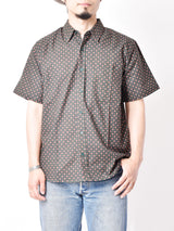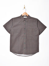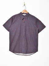 グリーン地にネイビー×レッドの小紋柄をあしらった半袖シャツ。オールコットンの柔らかくコシのある生地で着用感よくシックな大人のシャツスタイルにおすすめの一着です。