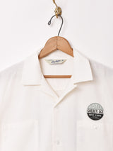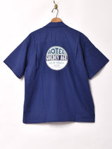 胸元とバックのプリントが古着らしい雰囲気満点の半袖開襟シャツ。オールコットン素材で通気性のよく、軽い着心地です。