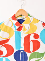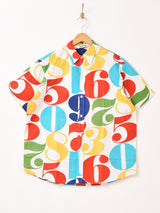 数字が模様として描かれた、ユニークな柄シャツ。ハリのあるコットン生地です。