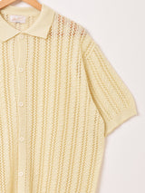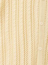 こなれた雰囲気に仕上げてくれる、透かし編みのニットシャツ。ちょっとした防寒にも、さっと羽織れる軽い生地感です。