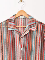 カラフルな配色のマルチストライプが目を惹く、透かし編みの開襟シャツ。涼しげな軽い生地感で、夏らしく着こなせる一着です。フリーサイズで着用いただけます。