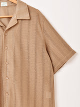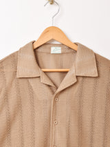 シンプルな無地の、透かし編みの開襟シャツ。涼しげな軽い生地感で、夏らしく着こなせる一着です。フリーサイズで着用いただけます。