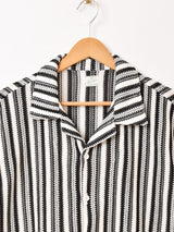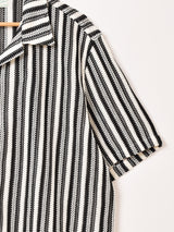 ストライプの透かし編みが目を惹く開襟シャツ。前を開けて羽織としても活躍する一着です。やや厚みのある生地感です。
