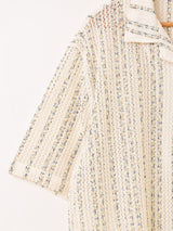 細かな透かし編み生地で仕立てた半袖シャツ。ストライプ状にカラフルな糸が編み込まれています。涼しげで春夏コーディネートのアクセントになる一着。フリーサイズでご着用いただけます。