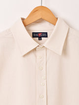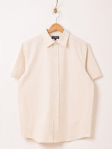一見シンプルな無地のシャツに、ランダムに多数施されたボタンがユニークな半袖シャツ。ボタンホールまであり再現性が高いですが、一般的なシャツのボタンの位置以外はフェイクです。しっかりとしたコットン生地です。