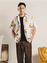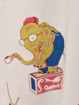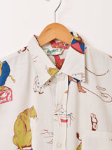 サーカスのモチーフがデザインされ、古着らしい雰囲気満点の半袖シャツ。コットン生地で仕立てています。