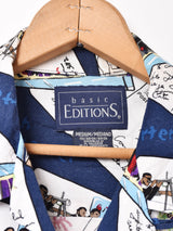 旅行先のポストカードが散りばめられた、雰囲気のよい半袖開襟シャツ。レーヨン素材で涼しげな生地感です。