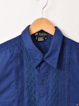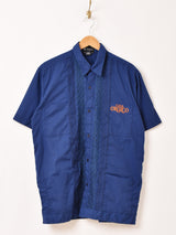 鮮やかなネイビーボディに、オレンジの刺繍ロゴがパキッと映えた一着。キューバシャツならではのディテールを残しつつ、ワークシャツのような雰囲気が魅力的です。