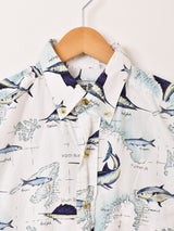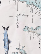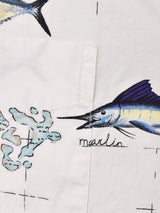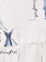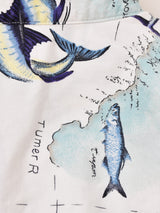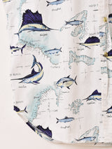 マイアミ諸島・ビミニ島の地図に魚が描かれた、夏らしい雰囲気の柄シャツ。程よいハリ感のあるコットン生地で仕立てています。