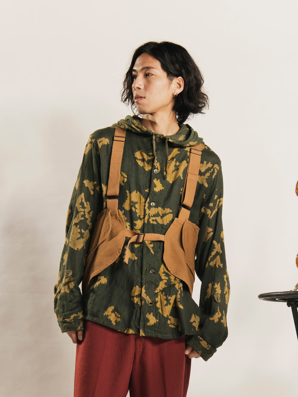 大きなポケット付きで機能性に優れたディテールが魅力のハンティングベスト。長さ調節可能なアジャスター式の肩紐がポイント。しっかりとしたタフなコットン生地で、シーズンレスに活躍するタウンユースアイテムです。